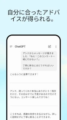 Android 版 ChatGPT は、OpenAI の最先端AI技術をあなたのスマートフォンでいつでも体験できる公式アプリです。AIが質問に答え、情報を提供し、クリエイティブな文章を生成。日々の作業や学習をサポートし、あなたの思考を次のレベルへと進化させます。