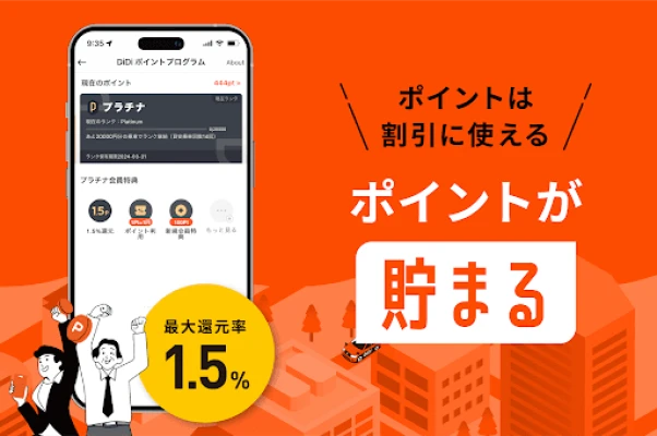 DiDiの最大の魅力は、その手軽さと安心感にあります。アプリ内でクレジットカードやPayPayを登録すれば、車内での支払いは一切不要。乗車から降車まで、誰とも接触することなくスムーズに完了します。さらに、乗車前にドライバーの検温やマスク着用状況を確認できるため、安心してご乗車いただけます。移動のたびにポイントが貯まるお得なプログラムも充実しており、乗車金額に応じて最大1.5%のポイントを獲得可能。初回乗車でのポイント進呈やお友達紹介クーポンなど、移動費用を賢く抑えるお得な特典も満載です。