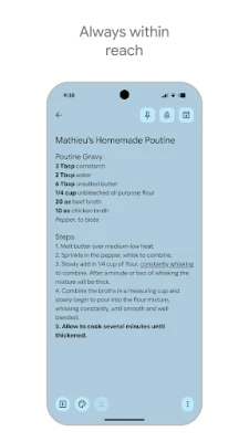 ひらめき、タスク、アイデア。「Google Keep」があれば、思いついたその瞬間に大切な情報を逃さず記録できます。テキスト、リスト、写真はもちろん、急いでいる時は音声で記録するだけで、自動的に文字に起こされ、後から簡単に検索可能です。スマートフォンやタブレットの便利なウィジェット機能、そしてWear OSデバイスのタイルやウォッチフェイスとの連携により、場所や状況を選ばずに瞬時にメモを開始できる、かつてないほどの利便性を提供します。