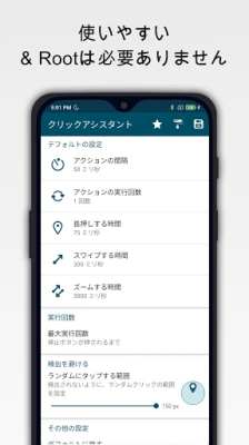 「Tapping - Auto Clicker」は、単なる自動クリッカーを超えた高度な機能を提供します。シンプルなジェスチャー記録機能により、複雑な操作も簡単に記憶させることができ、革新的なスワイプ(スライド)や2本指ズームジェスチャーにも対応。遅延時間、長押し(ロングタッチ)時間、繰り返し回数など、クリックごとの詳細なパラメータ設定も自由自在です。新インターフェースでは、スクリプトの実行中にいつでも一時停止、再開、中止が可能。作成したスクリプトの保存・読み込みや、便利なカウントダウンタイマー機能も搭載しており、Root化は一切不要です。