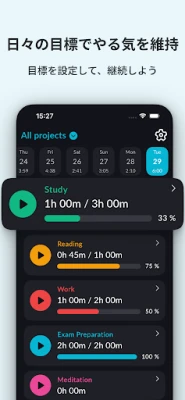 Time Balanceは、集中力を高め、目標達成をサポートする洗練されたポモドーロタイマー&時間追跡アプリです。勉強、仕事、タスク管理で先延ばしを克服し、生産性を劇的に向上させます。Time Balanceを活用し、学習効率も効果的に高めましょう。
