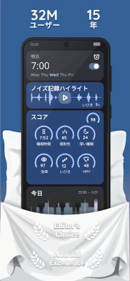 Sleep as Androidは、あなたの夜を深い安らぎと爽やかな目覚めへと導く、先進の睡眠パートナーです。15年以上にわたる専門知識と科学的に検証されたアルゴリズムに基づき、単なる睡眠トラッカーを超えた、あなたのパーソナルな睡眠改善ツールとして機能します。初めての方も、まずは7日間のプレミアム体験で、その全ての機能を心ゆくまでお試しください。あなたの睡眠習慣を根本から理解し、最高の状態へと導くための旅がここから始まります。